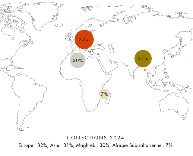 As part of our vision of slow fashion, we are focusing not only on the sustainability of our products, but also on the sustainability of our relationships by building loyal relationships with our partners. 43% of them have been with us for more than five years. These suppliers know our products, our requirements and work with us to improve our models. That's why we don't stop at their geographical location. However, we do our utmost to develop new local partnerships in Europe and North Africa.