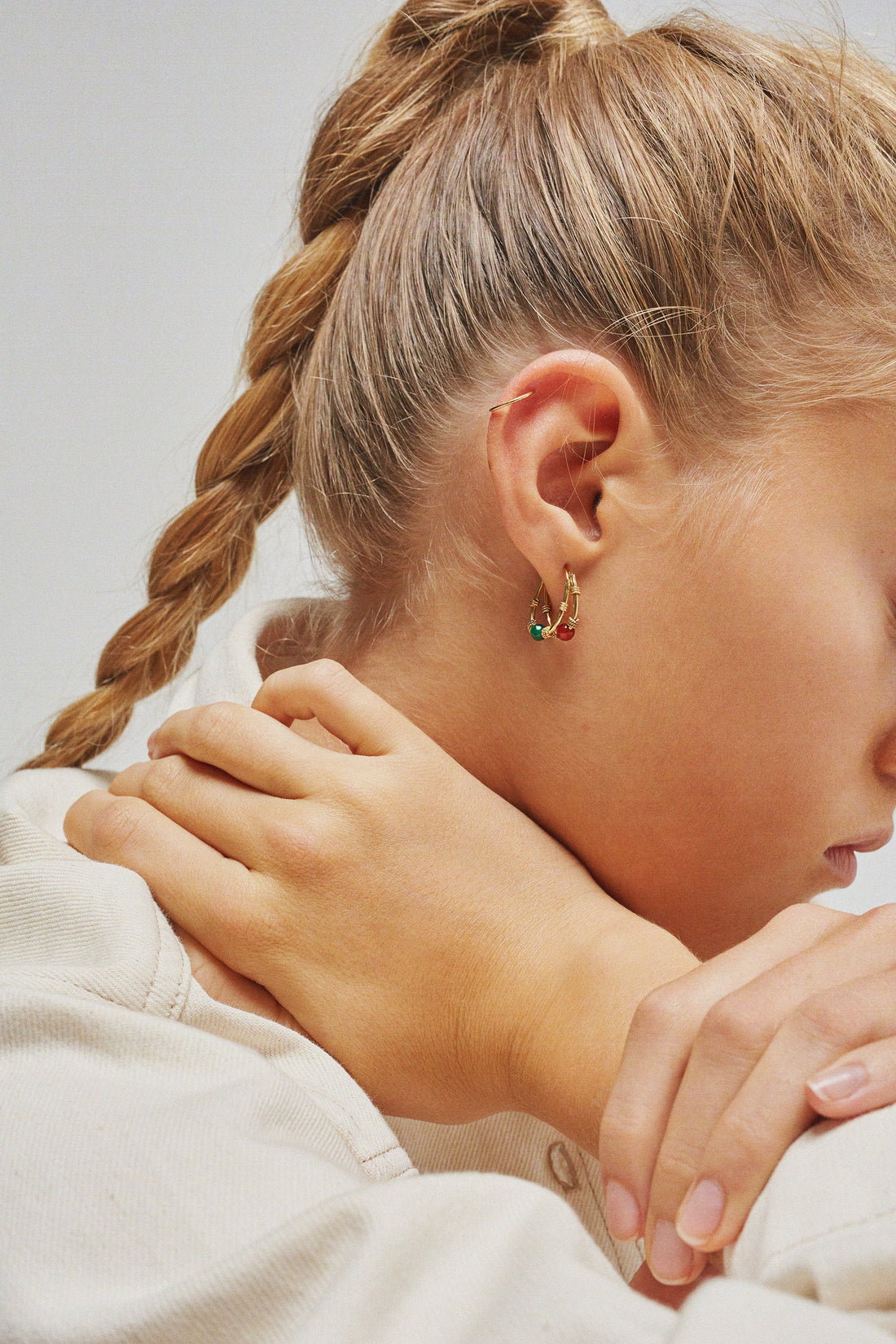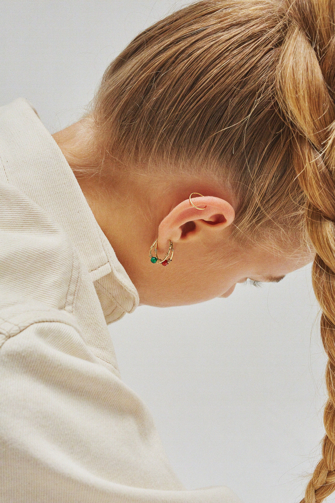 ZINC is a pair of vermeil earrings, set with a semi-precious stone (dark green onyx).