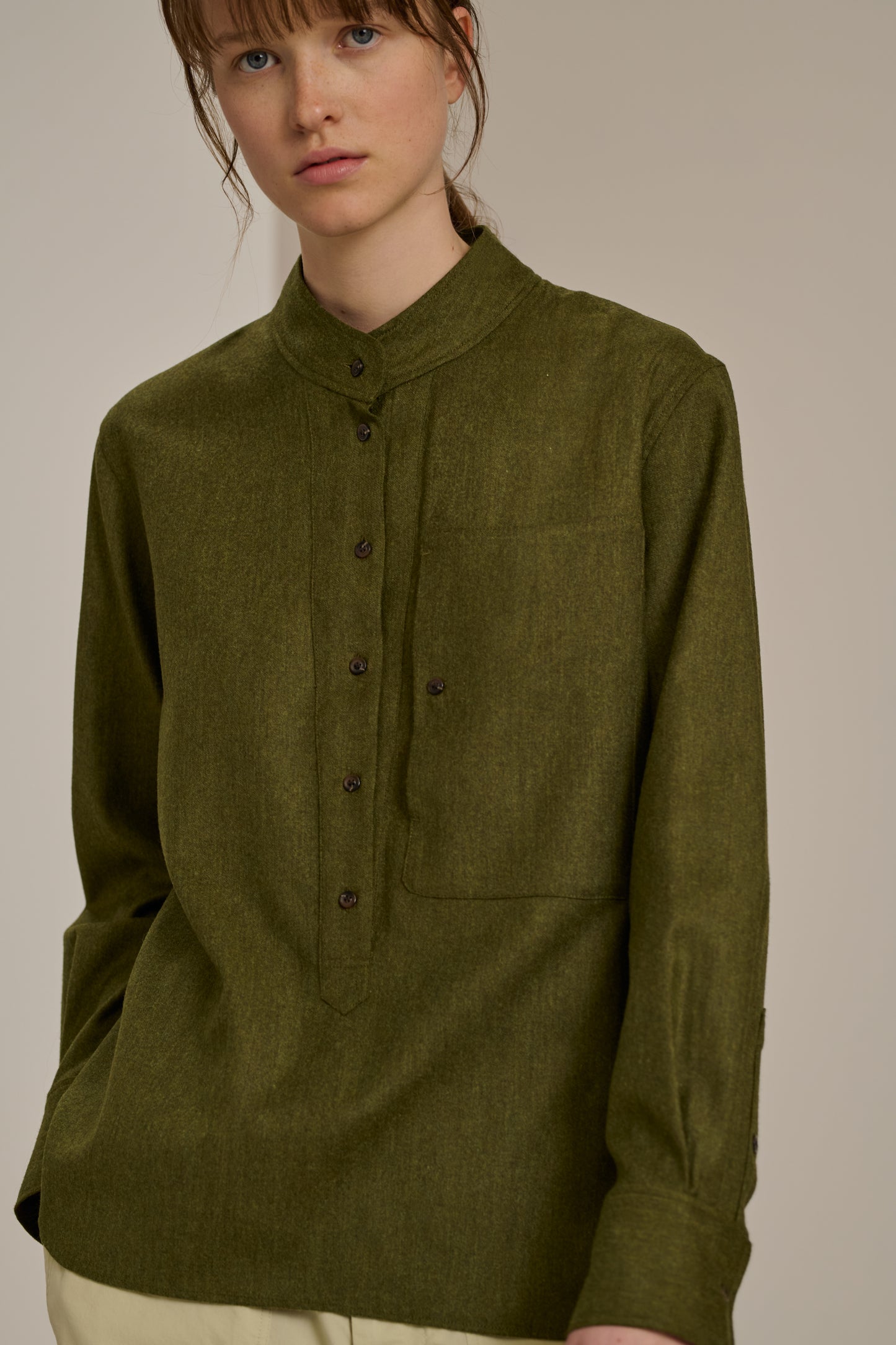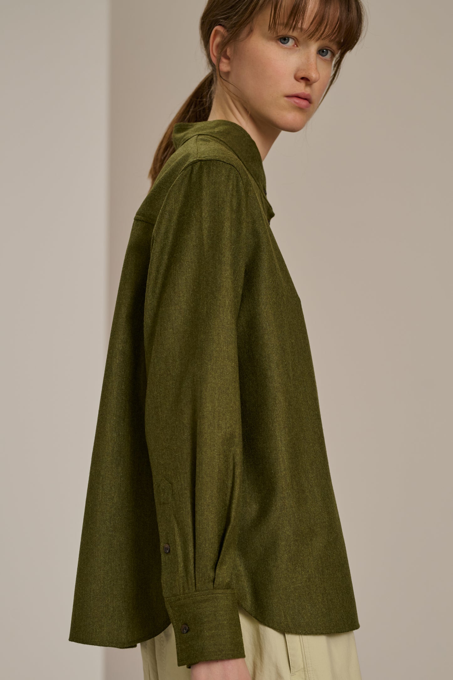 CROATIE is a lightweight flecked flannel blouse. Its straight and loose fit ensures a fluid and relaxed silhouette, perfect for a look that's both chic and comfortable.